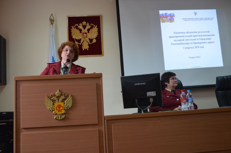В целях реализации проектов стратегического направления «Реформа контрольной и надзорной деятельности» Управлением Роспотребнадзора по Приморскому краю продолжаются мероприятия по проведению публичных обсуждений результатов правоприменительной практики. Очередные публичные слушания состоялись 19 апреля 2018 года по итогам 1 квартала 2018г.