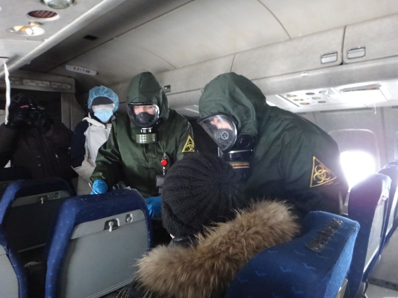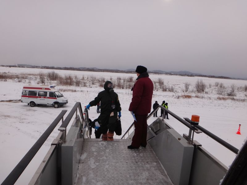 На втором этапе учений – при доставке условного больного бригадой скорой медицинской помощи КГБУЗ «Артемовская станция скорой медицинской помощи» из аэропорта в специализированное подразделение «Инфекционная больница КГБУЗ «Уссурийская городская больница» проведены мероприятия по оказанию квалифицированной медицинской помощи, дезинфекции, отбору и направлению биологического материала в референс-центр для диагностики.
