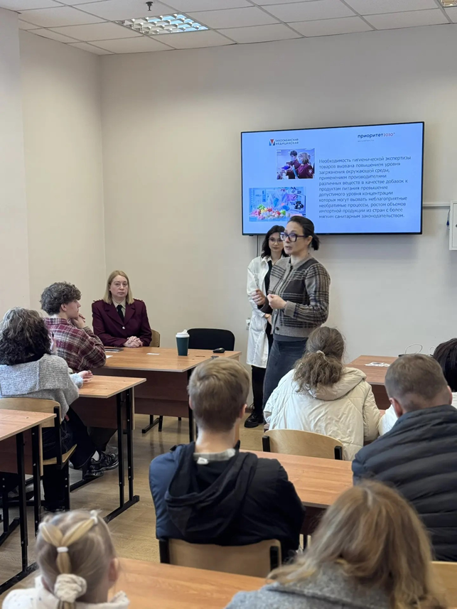 Управление Роспотребнадзора по Приморскому краю приняло участие в Дне открытых дверей 28.03.2026 в ФГБОУ ВО «Тихоокеанский государственный медицинский университет» Минздрава России. Заместитель начальника отдела организации надзора Анастасия Павлюк рассказала абитуриентам и их родителям о специальности «Медико-профилактическое дело», профессии врача по общей гигиене, эпидемиологии, структуре и полномочиях Роспотребнадзора. Разъяснены особенности заключения договора о целевом обучении с дальнейшим прохождением федеральной государственной гражданской службы.
